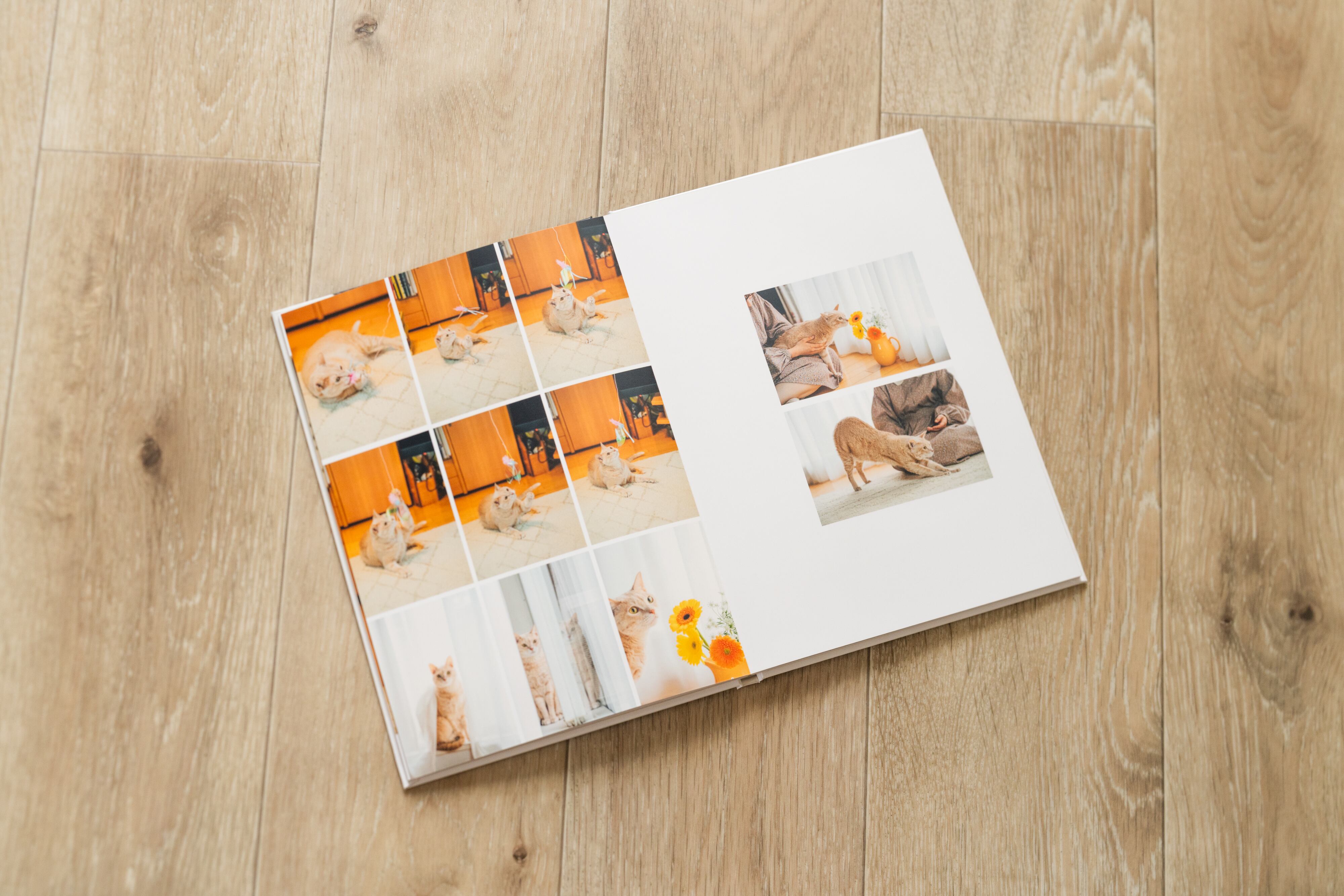 物語を深く紡げるボリューム: 最大32ページ、写真枚数は約100枚まで対応(少ない枚数で贅沢に余白を使うレイアウトも可能です)。パートナーとの長い歩みを、余すことなく一冊に収めることができます。